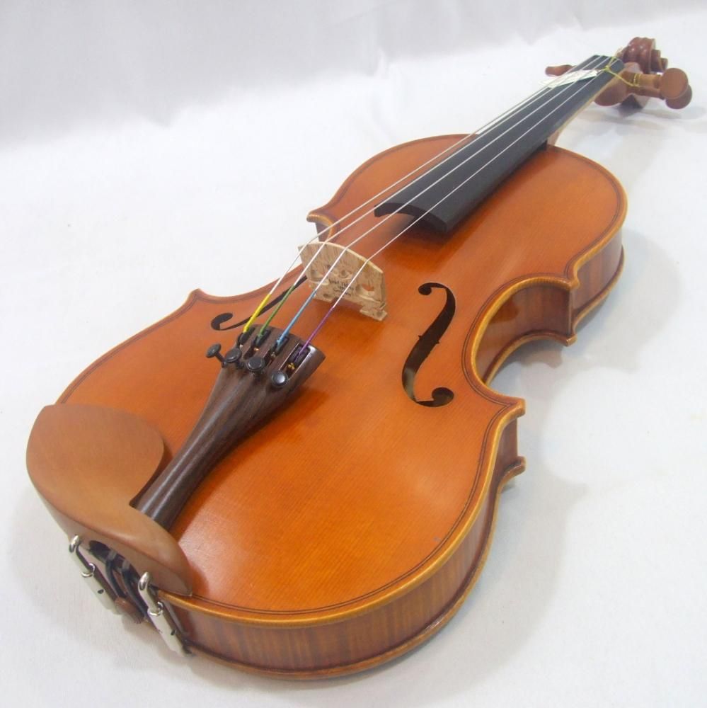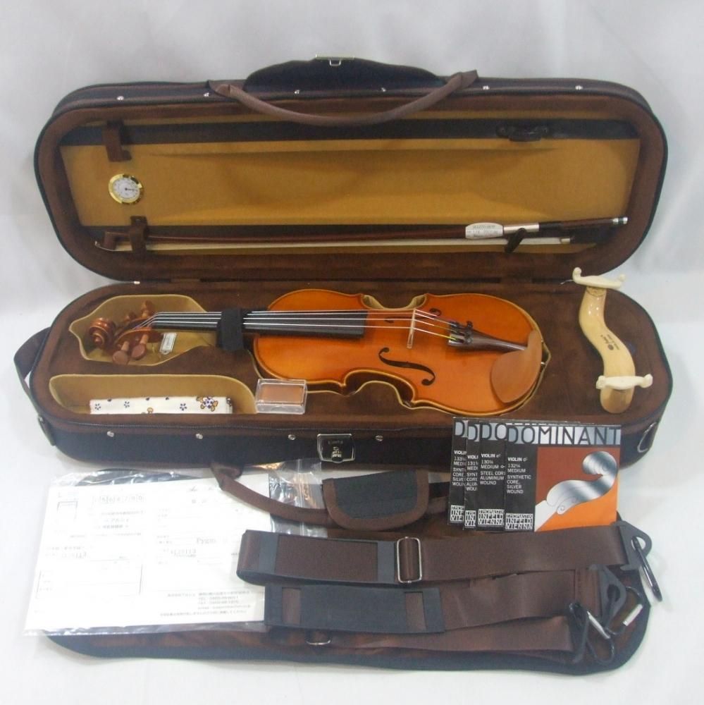 木工楽器は個体差が出やすいのですが ピグマリウスは安定して常に良いバイオリンを販売されています。この個体もパリッとしっかり鳴っていて、なお、低音はバランス良く出てキンキンした音では無く、まろやかで演奏していても気持ち良い振動がバイオリン本体から体験できると思います。全体的のバイオリンの状態も良く、定番ドミナント弦を搭載しこれからはじめようかと思ってる方や、このご予算でお悩みの方はある意味癖の無いバイオリンですのでお薦めいたします。現在の総額新品定価17万程度の内容なり分数サイズでは中古でもめったに流通しません。展示未使用品が 半額程度の販売です。付属品も良く、サイズアップのリセールも良いので とてもお買い得です。
